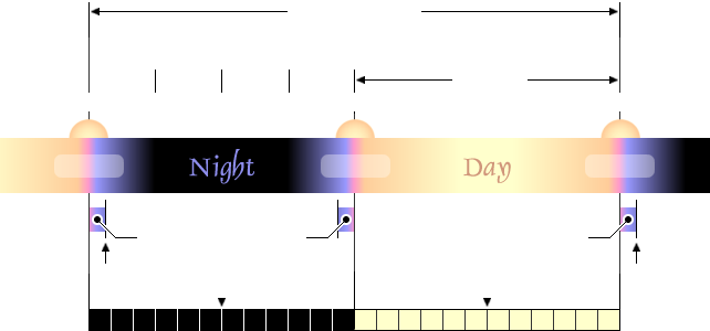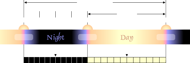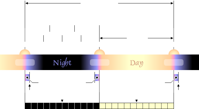 From Psalm 90:4 and 2 Peter 3:8, the Scriptures teach that the Millennial Sabbath and the Age of Life with יהושע the Messiah will begin after 6000 Years since the true epoch of creation. We believe the Sabbaths, New Moons, Appointed Times and Festivals of יהוה have been correctly restored. We also believe that this site correctly teaches how to determine the Hebrew Hour, Hebrew Day, Hebrew Month and Hebrew Year. We are watching, hoping, and praying that the Messiah will come soon. The final goal of the Calendar Restoration Project is to successfully determine the true epoch of creation. יהושע the Messiah is not delaying His coming. יהושע will come on time. We must all keep watching as the Master has said, to see something many have longed to see - the resurrection of the just. By entering this website you acknowledge that the date posted for the epoch of creation is provisional, and is conditional upon historical proof which is not yet published. Sposób określenia godziny hebrajskiejHebrajska godzina jest zdefiniowana jako 1/12 czasu pomiędzy zachodem a wschodem słońca, lub 1/12 czasu pomiędzy wschodem a zachodem słońca. Jedyne biblijne odniesienie do tego, że jest 12 hebrajskich godzin w hebrajskim dniu znajduje się w John 11:9 gdzie יהושע Mesjasz zadał słynne pytanie: "Czy dzień nie ma dwunastu godzin?" Poniższy diagram jest działającym czasomierzem, w którym pozycja słońca wskazuje aktualną Godzinę Hebrajską w Jerozolimie. Jedna Godzina Hebrajska kończy się, a druga zaczyna, gdy środek słońca przekracza linię godzinową.. Czas w Jerozolimie na żywo