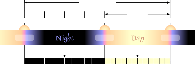 From Psalm 90:4 and 2 Peter 3:8, the Scriptures teach that the Millennial Sabbath and the Age of Life with יהושע the Messiah will begin after 6000 Years since the true epoch of creation. We believe the Sabbaths, New Moons, Appointed Times and Festivals of יהוה have been correctly restored. We also believe that this site correctly teaches how to determine the Hebrew Hour, Hebrew Day, Hebrew Month and Hebrew Year. We are watching, hoping, and praying that the Messiah will come soon. The final goal of the Calendar Restoration Project is to successfully determine the true epoch of creation. יהושע the Messiah is not delaying His coming. יהושע will come on time. We must all keep watching as the Master has said, to see something many have longed to see - the resurrection of the just. By entering this website you acknowledge that the date posted for the epoch of creation is provisional, and is conditional upon historical proof which is not yet published. Sposób określenia godziny hebrajskiejHebrajska godzina jest zdefiniowana jako 1/12 czasu pomiędzy zachodem a wschodem słońca, lub 1/12 czasu pomiędzy wschodem a zachodem słońca. Jedyne biblijne odniesienie do tego, że jest 12 hebrajskich godzin w hebrajskim dniu znajduje się w John 11:9 gdzie יהושע Mesjasz zadał słynne pytanie: "Czy dzień nie ma dwunastu godzin?" Poniższy diagram jest działającym czasomierzem, w którym pozycja słońca wskazuje aktualną Godzinę Hebrajską w Jerozolimie. Jedna Godzina Hebrajska kończy się, a druga zaczyna, gdy środek słońca przekracza linię godzinową.. Czas w Jerozolimie na żywo